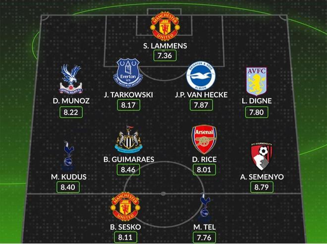 外媒评英超第7轮最佳阵容:曼联、热刺两人入选,赖斯在列
